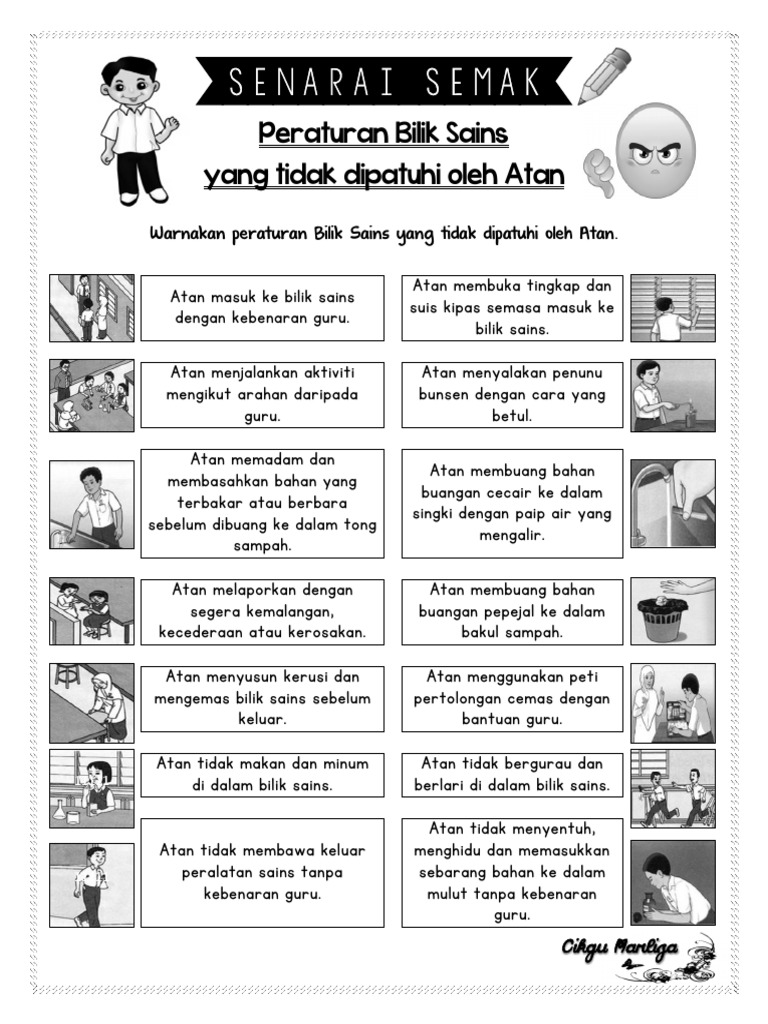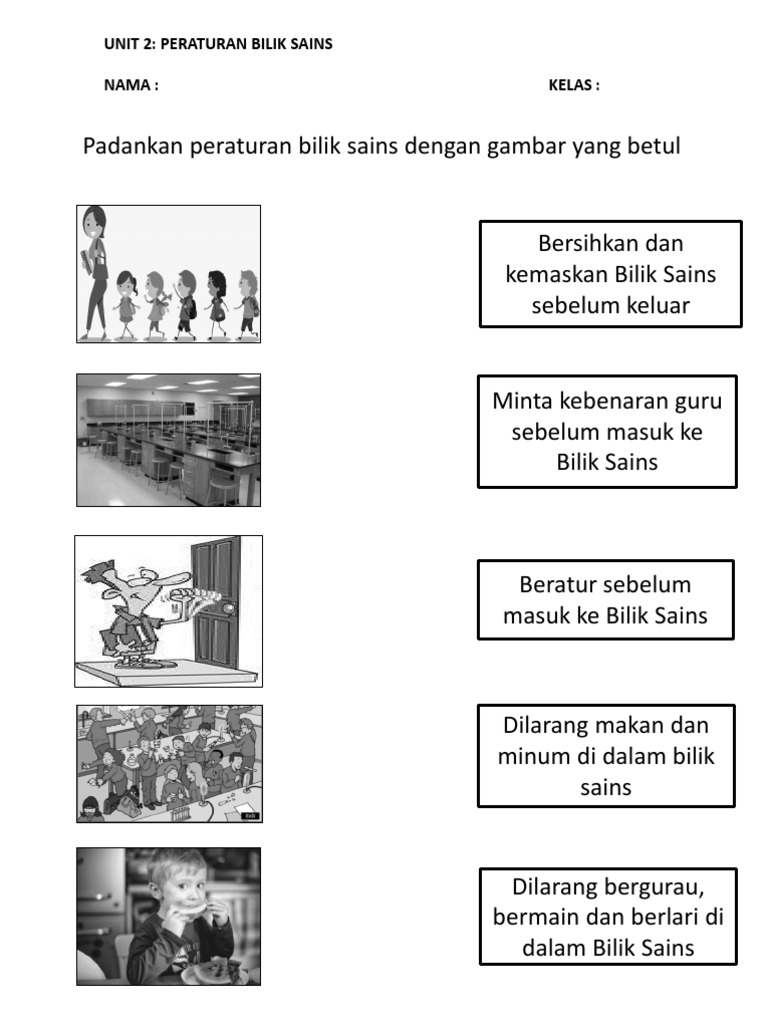 Pemeliharaan dan pemuliharaan unit 6: Lembaran online kertas 1 peraturan bilik sains tahun 5. Kertas peperiksaan ini adalah sains untuk murid darjah 1 mengikut kurikulum standard sekolah rendah (kssr). Padankan peraturan bilik sains dengan gambar. Rpt sains tahun 2 2020 rozayus. You can do the exercises online or download the worksheet as pdf. Muat turun bahan peraturan bilik sains yang dikongsikan oleh cikgu roslan. Adhere to science room rules drama spontan peraturan bilik sains malay cikgusafuan. Documents similar to latihan peraturan bilik sains tahun 1. Apakah yang akan berlaku jika tidak mematuhi peraturan bilik sains? Download lagu peraturan bilik sains (3.22mb) dan streaming kumpulan lagu peraturan bilik sains (3.22mb) mp3 terbaru di metrolagu dan nikmati, video hasil diatas adalah hasil pencarian dari anda peraturan bilik sains mp3 dan menurut kami yang paling cocok adalah peraturan bilik sains. Dapat mengikuti arahan peraturan bilik sains 5ind t$e fid#guess t$e fib(!ak21) </b>eorang a$li dalam !asukan memberi tiga !enerangan tentang sesuatu yang sebenarnya $anya dua yang betul atau yang benar satu lagi adala$ sala$.' a$li lain diminta men. Berikut adalah peraturan am ketika berada di dalam bilik sains: